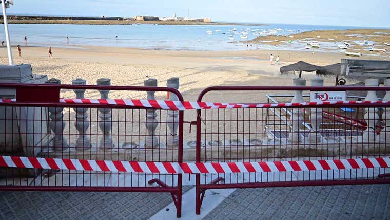Un camión que estaba descargando material para el montaje de Gadir, el resurgir de los fenicios, el espectáculo de esta compañía, que es el acto estrella de la programación Cádiz Fenicia, ha dañado dos partes de la balaustrada de esta playa de la capital gaditana.