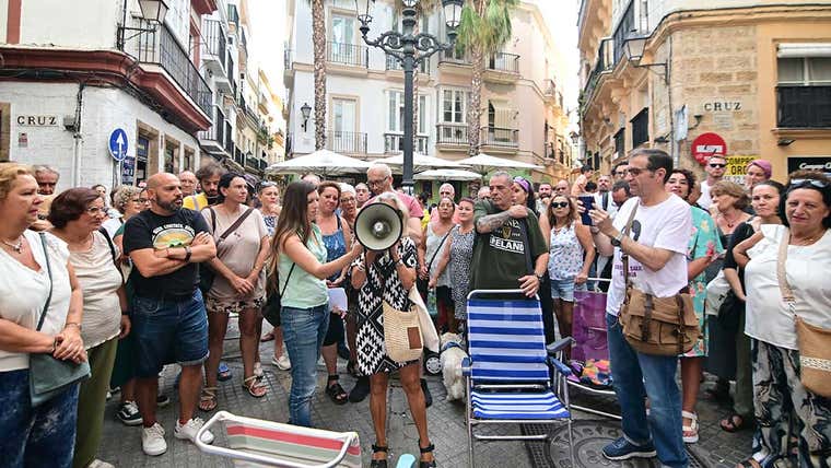 Es la primera dirigente vecinal que asiste a una de estas movilizaciones convocadas contra la proliferación de viviendas turísticas en la ciudad. Aún se espera una acción o declaración contundente de la Federación 5 de Abril o del movimiento vecinal del Barrio del Pópulo en el caso de María, la mujer de 87 años que estuvo a punto de tener que abandonar su casa donde iban a poner un piso turístico (finalmente la compró la Fundación del Cádiz CF y la dejó en ella). O su participación más activa y respaldo tajante a los movilizaciones de la plataforma Cádiz Resiste.