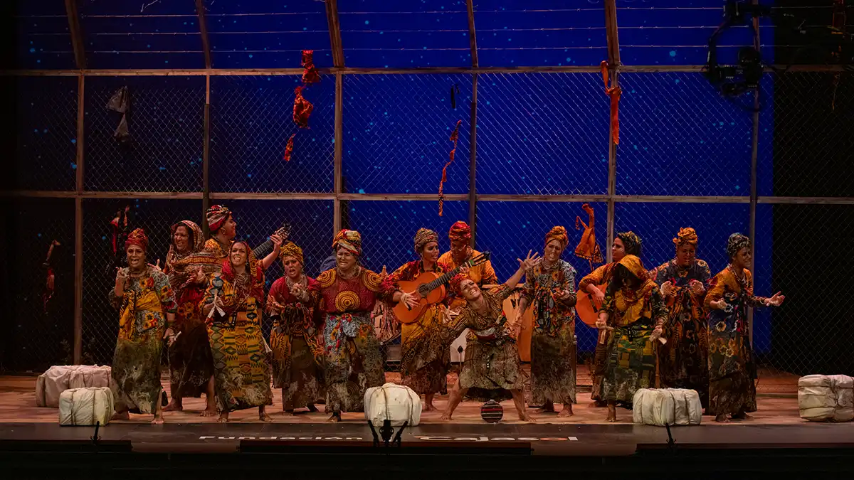 La función arrancó con el coro El grimorio, quiénes interpretaban a guardianes y hechiceras de una biblioteca. También llegó la comparsa inclusiva, granaína, El gran comandante, que traían consigo, de nuevo, a una intérprete de lengua de signos. El tercer turno fue para La valla, la agrupación compuesta íntegramente por mujeres, que representaban a las mujeres inmigrantes que cruzan la mar.