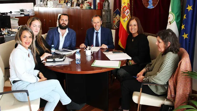 El alcalde de Chiclana, José María Román, acompañado de la teniente de alcalde, Ana González, y el delegado de Bienestar Animal, Guillermo Sierra, mantuvieron una reunión este 24 de abril con Julia Torres, que es la representante de la protectora 'Huellas Callejeras', para analizar la situación de las actuaciones municipales realizadas en las últimas semanas.