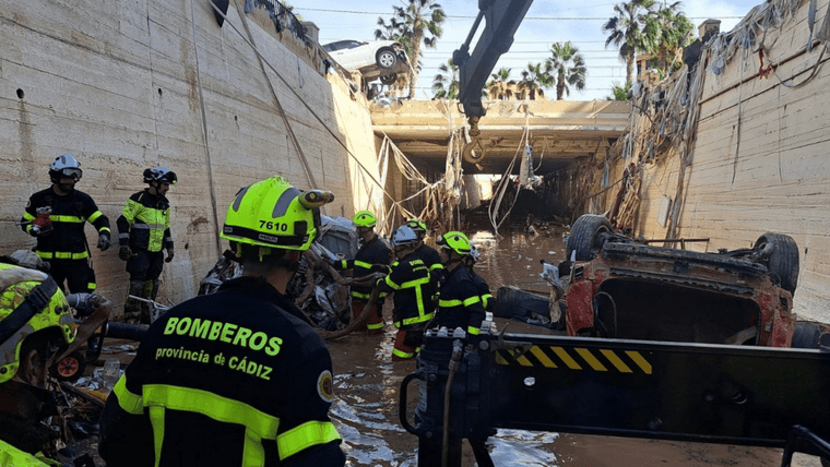Bomberos de Cádiz colaboran en la liberación de vehículos y víctimas de la tragedia de un túnel en Valencia